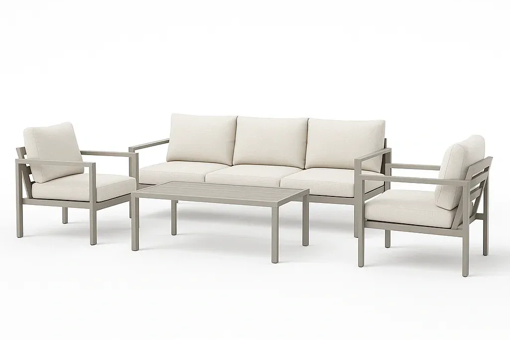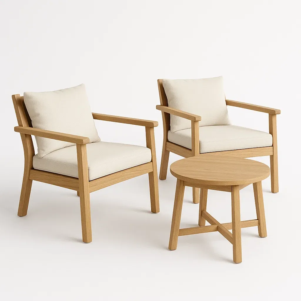 Los cojines están incluidos y el conjunto es resistente al agua y a los rayos UV. Se recomienda limpiar con un paño húmedo.